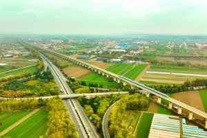 三农头条乡旅导报讯:2024年11月19日,夏县水头镇广袤田野上色彩斑斓,块块绿色麦田与村庄民居、空中高铁、宽…