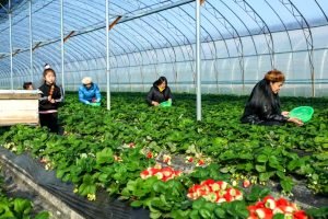 三农头条乡旅导报讯:12月21日,游客在夏县庙前镇付村一处温室大棚内采摘草莓。 冬至时节,寒气袭人,夏县庙前镇…