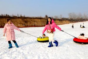 2023年12月30日,元旦小长假第一天,夏县南大里乡德兰度假村滑雪场开门迎客,众多游人在皑皑白雪中体验雪地娱…