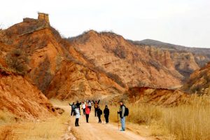 2024年3月3日,平陆县境内黄河边上的米汤沟里,许多游人和摄影爱好者在欣赏红土沟坡自然风光。米汤沟位于平陆县…