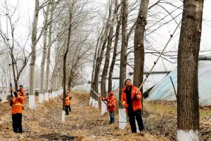 2024年2月28日,运城市夏县绿化管护工人在对夏裴线树木进行整形修剪。 早春时节,正值造林绿化、树木管护的重…
