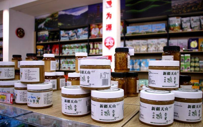 据介绍,欢乐巴扎·新疆街共有50余家店铺,货品齐全、正宗地道、价格优惠。新疆乳品工厂店、新疆地理标志产品旗舰店等店内,雪莲辣椒酱、新疆酸奶、奶啤、新疆面粉、奶茶、蜂蜜、谢利盖羔羊、库尔勒香梨、阿克苏冰糖心苹果……