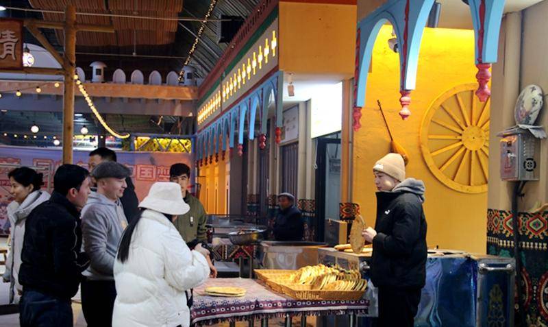 除了新疆特产,吸引人驻足的还有新疆美食。香喷喷的新疆烤串儿、外酥里嫩的玫瑰馅儿烤馕、营养丰富的手抓饭、热乎乎的新疆烤包子、香辣劲道的新疆炒米粉……不用去新疆,也可以尝到地道新疆美食。