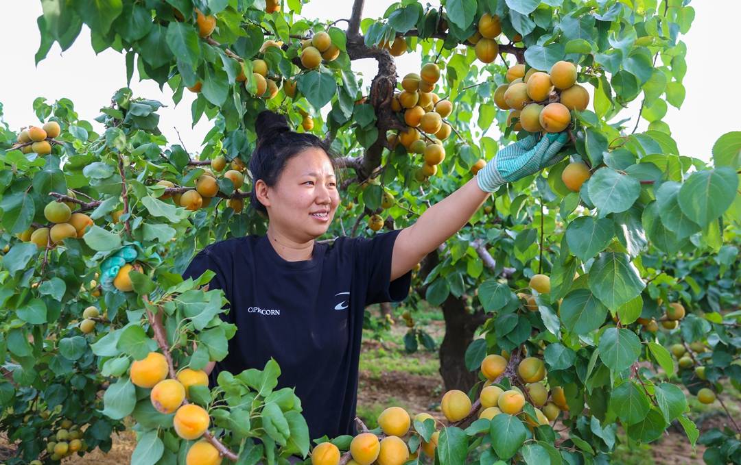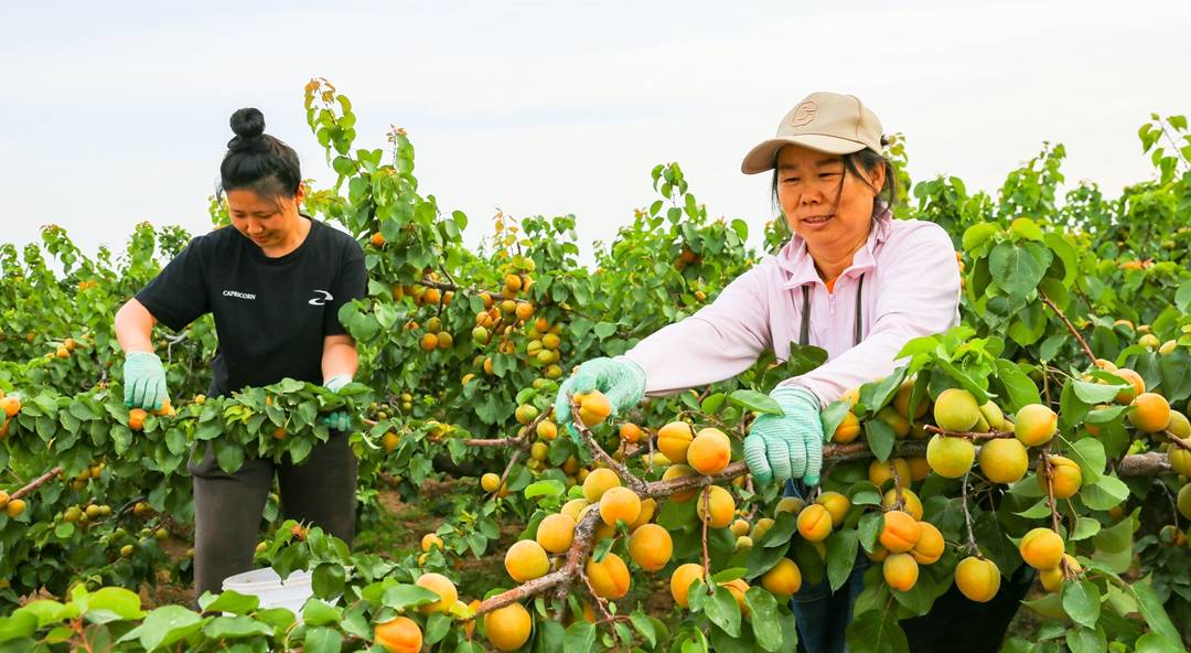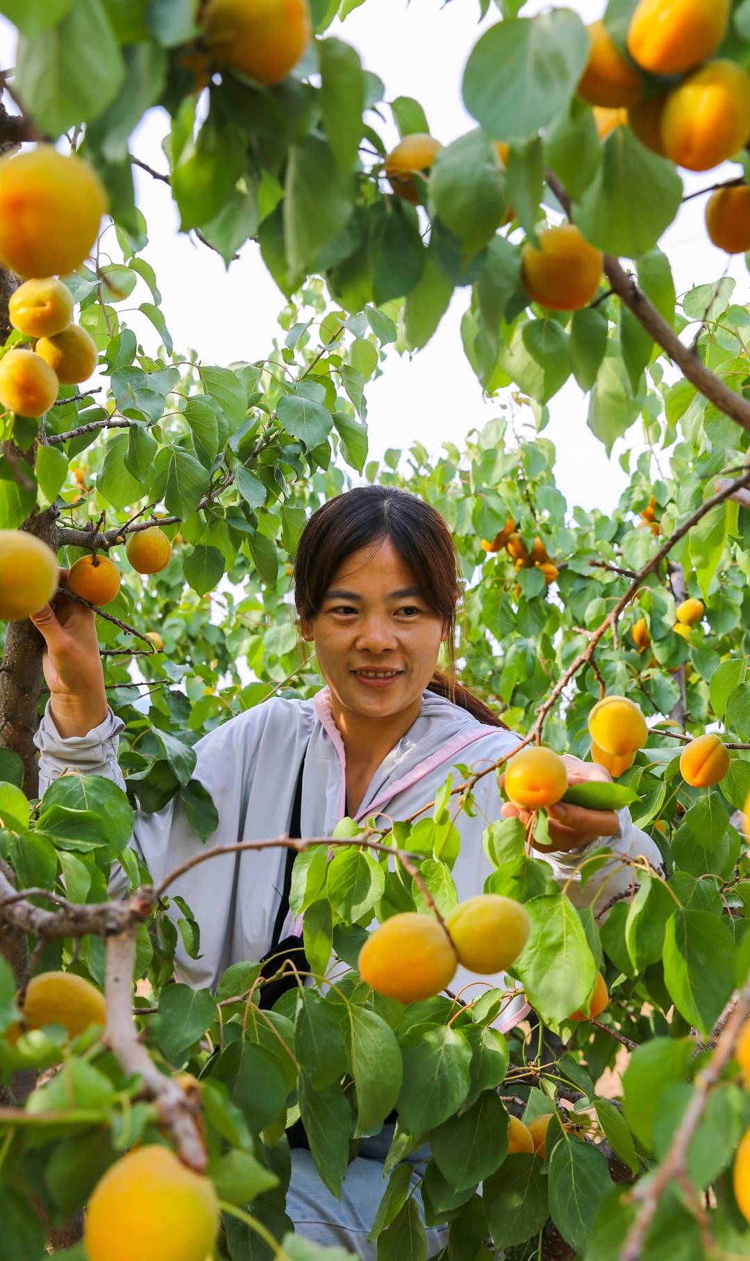 近年来,夏县依托中条山前沿日照时间长、昼夜温差大的资源优势,在横跨南北18公里条山旅游公路沿线的乡镇村庄鼓励引导农民规模发展以“金太阳”为主的早熟品种杏果产业,“种”出春天游客赏花游玩、初夏进园体验采摘的农旅融合好“丰”景,拓宽农民增收渠道,助力乡村全面振兴。(特约摄影张秀峰)
