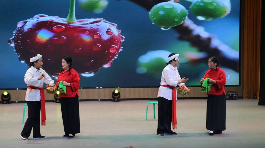 大扇舞《我的祖国》以磅礴之势震撼舞台,红绸翻涌,交织成流动的山河秀景,将新时代农民对祖国的热爱化作跃动的力量;朗诵节目《中华颂》或激昂澎湃,或深情婉转,抑扬顿挫间表达着对中华民族的挚爱与礼赞;秧歌《送樱桃》生动风趣,别开生面,展现出青年人质朴真挚的情感,生动演绎着乡村生活的甜蜜与美好,散发着浓郁的地方文化色彩。