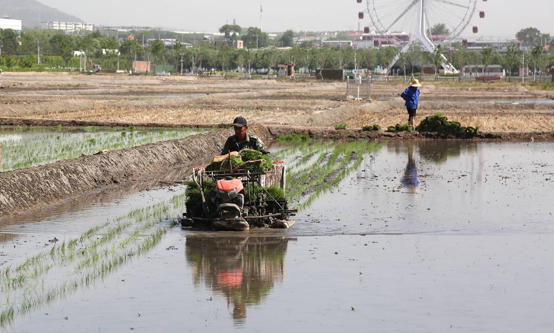 三农头条乡旅导报讯:5月21日,太原市晋源区康培稻田公园迎来了一年一度的插秧季。在广袤的水田间,插秧机匀速行进,所过之处留下一排排整齐的秧苗。远处青山如黛,近处水鸟翩跹,构成了一幅生机盎然的农耕画卷。