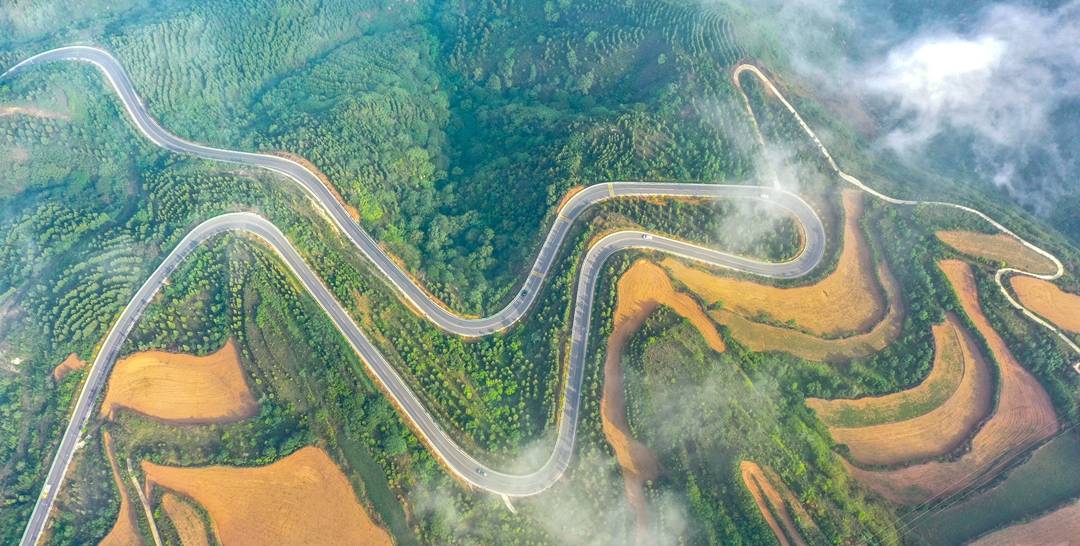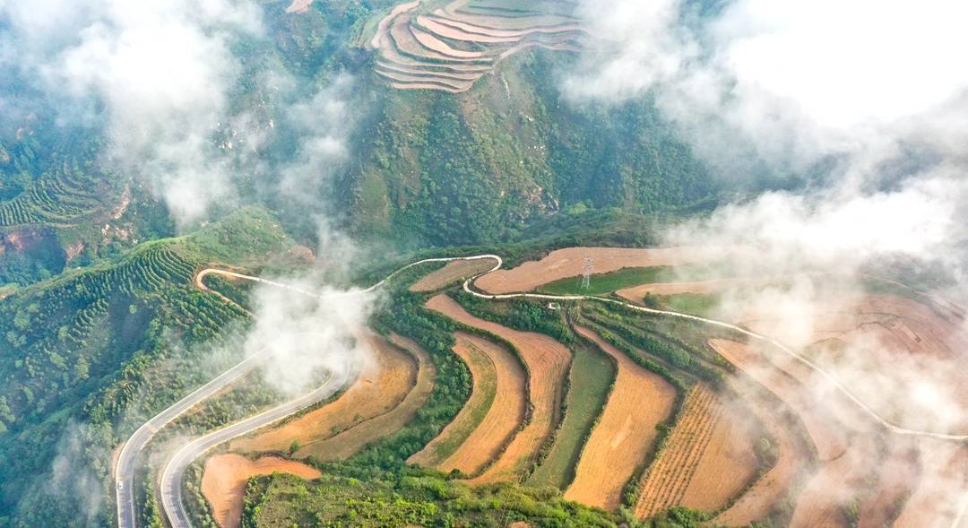 夏县:中条山云蒸雾绕如仙境 发布: 2025年5月23日 三农头条乡旅导报讯:2025年5月23日,雨后初霁,夏县境内的中条山腹地泗交镇云蒸雾绕,绵延群山、梯田村居、蜿蜒公路在云雾飘渺中若隐若现,形成一种仙境般的朦胧美感。(特约摄影张秀峰)
