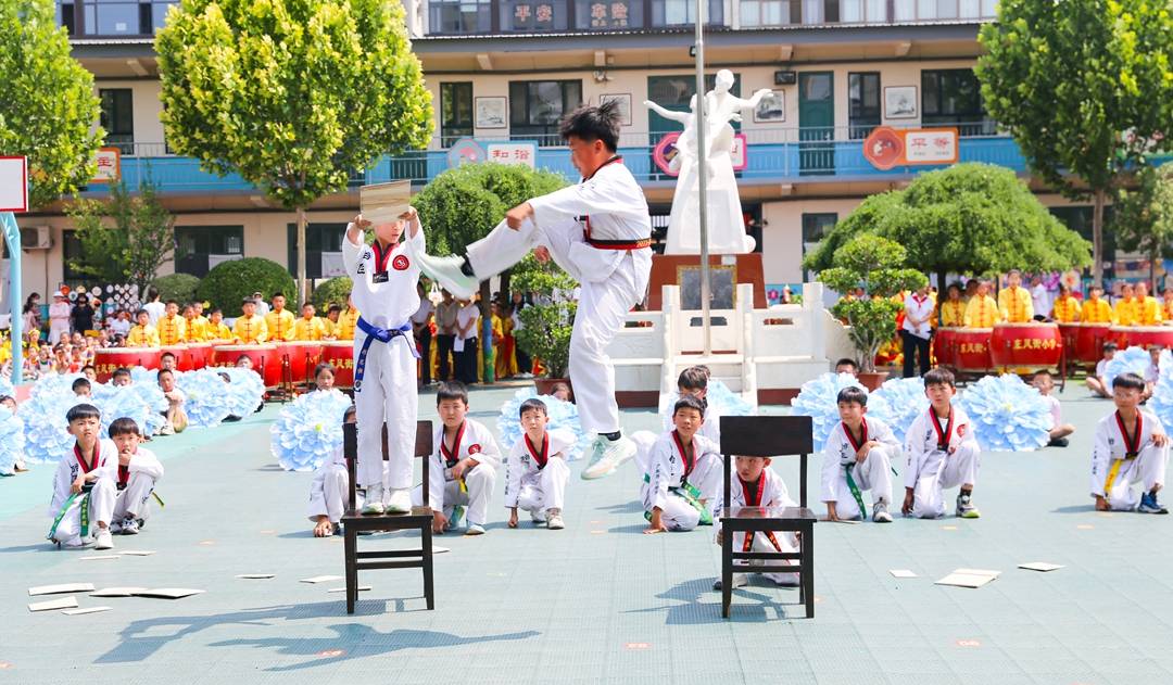 当天,城关中心校东风街小学举行“薪火相传红领巾 五育花开耀童年”迎“六一”主题活动,学生们通过舞蹈、打腰鼓、打大鼓、跆拳道、健美操等丰富多彩的活动,欢庆“六一”儿童节75周年的到来。(特约摄影武曙光 张秀峰)