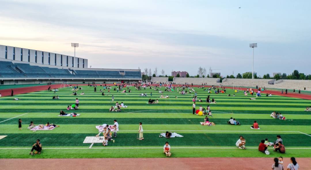 夏县:体育场上消夏纳凉 发布: 2025年6月10日 三农头条乡旅导报讯:2025年6月9日,仲夏时节,位于夏县白沙河畔的夏都体育中心凉风习习,许多市民和游人在绿茵如毯的运动场上消夏纳凉,谈笑风生,或在跑道上锻炼,感知大自然“空调”的魅力。(特约摄影张秀峰)