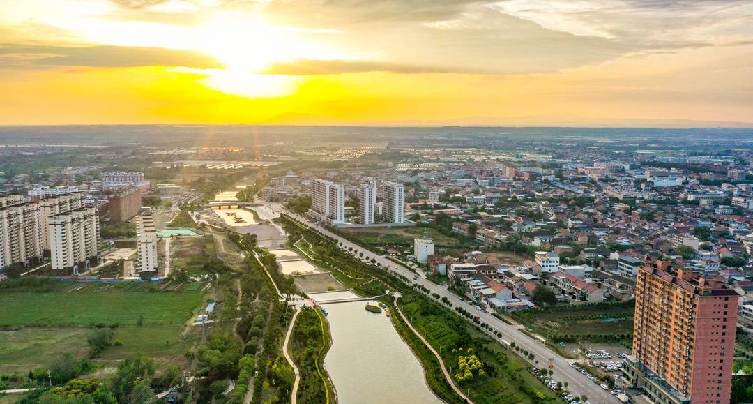 三农头条乡旅导报讯:6月18日,夕阳西下,夏县白沙河湿地公园在晚霞映衬下,与周边的城市楼群、村庄民居、宽阔道路、车辆行人等构成了一幅五彩斑斓的生态画卷。