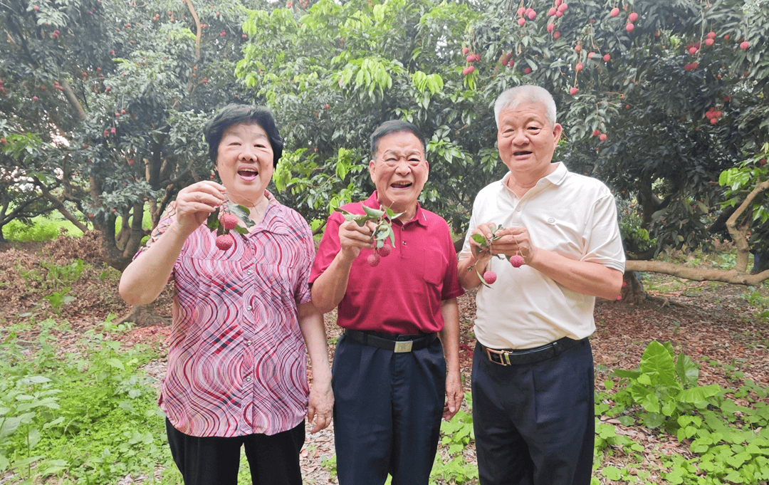 活动当日,彭老夫妇在陈桥顿、何继业的陪同下漫步集团荔枝园,采摘岭南佳果。他们三位;一位是守卫海防“英雄挺”九死一生功臣老兵彭德才,一位是三十六载荣军路上踔厉奋发的全国楷模陈桥顿,一位是把大国品牌屹立在世界舞台上的党建践行者何继业。他们品尝着鲜甜多汁、玉润冰清的荔枝,不时传来孩子般尽情嬉戏的欢歌笑语,这一幕正似南粤三大“男高音”,唱响岭南荔枝园。