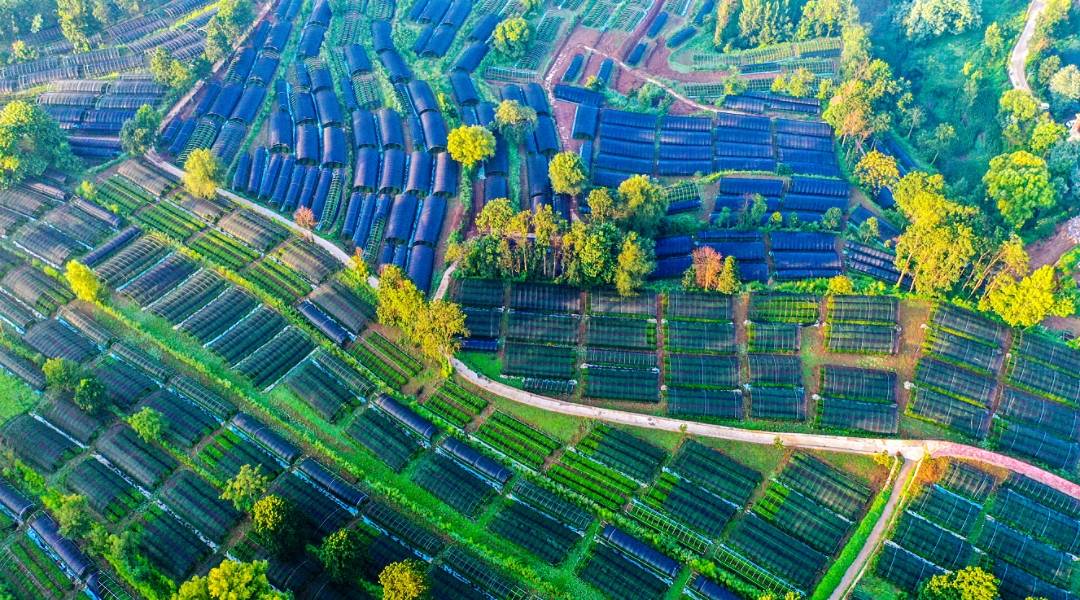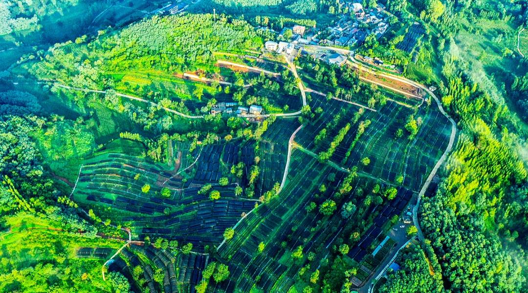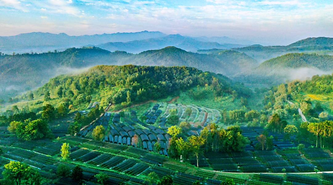 2025年8月12日,位于夏县中条山腹地泗交镇王家河村的山西厚民茶场,一排排错落有致的茶棚与周边的绵延青山、葱郁树林、村庄民居等相互映衬,绿意盎然,风光旖旎。