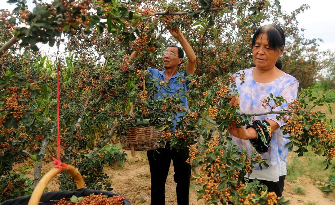 近年来,当地政府结合沙质土壤和温润气候等特点,大力发展花椒产业,形成了育苗、种植、加工、销售全产业链,已成为当地农民增收致富的支柱产业。(特约摄影张秀峰)