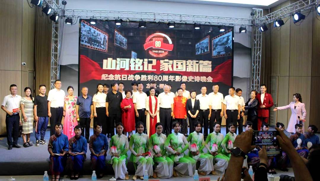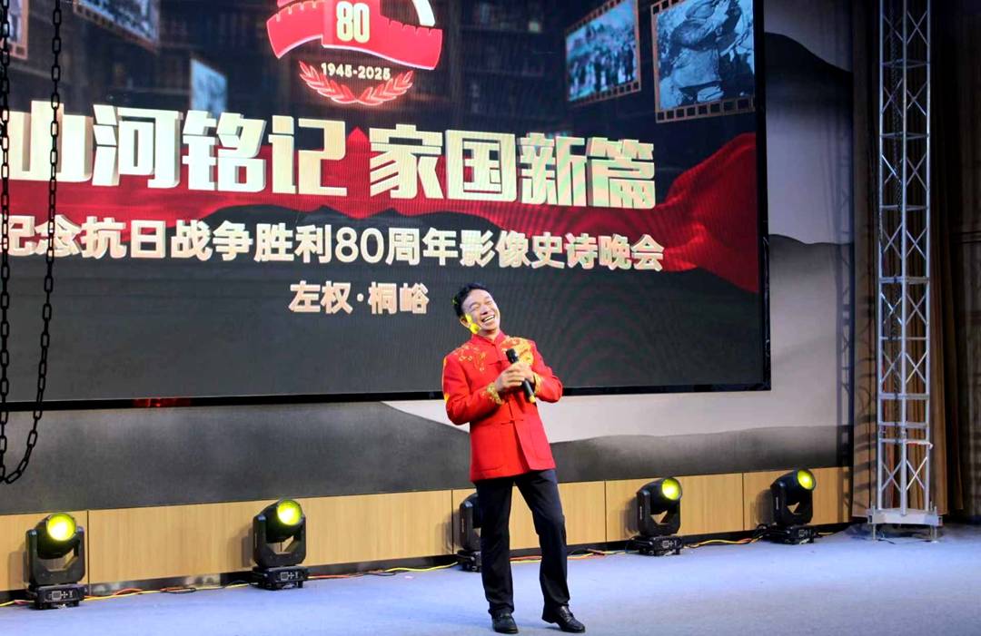 晚间19:30,“山河铭记 家国新篇”纪念抗日战争胜利80周年影像史诗晚会在1941会议中心一楼举行。晚会以左权民歌《桃花红杏花白》《打酸枣》《殷桃好吃树难栽》开场,舞蹈《做军鞋》用一针一线表达对子弟兵的支持与牵挂,舞者将对革命胜利的期盼、对亲人的思念都缝进鞋中。著名主持人李桂琴老师朗诵《不忘太行 不忘奶娘》,表达革命后辈铭记这片土地上的革命历史,缅怀先烈牺牲奉献,传承太行山区军民团结、不屈不挠的革命精神,牢记军民血肉相连的深厚情谊。