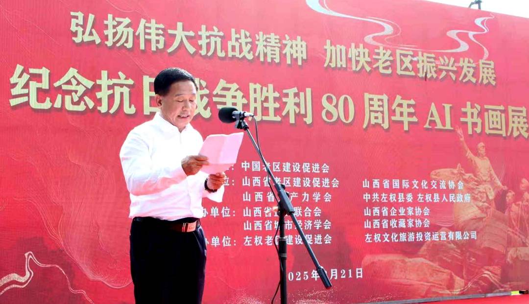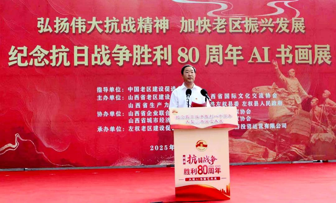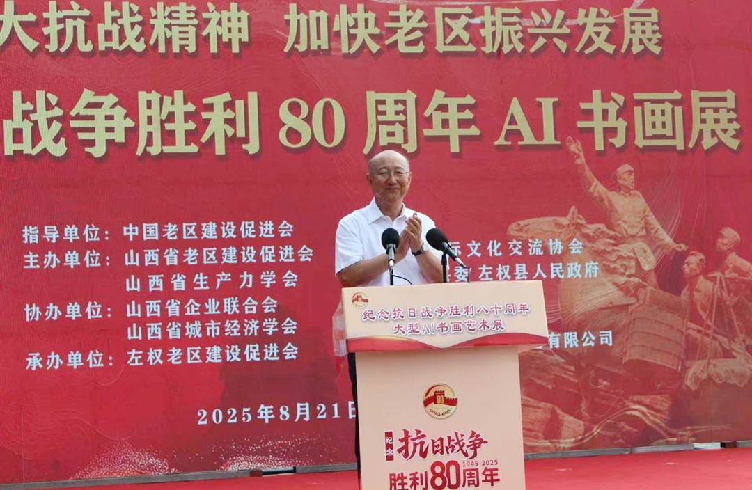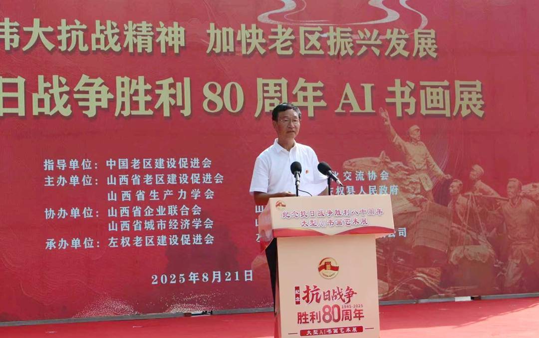 8月21日,“弘扬伟大抗战精神,加快老区振兴发展”——纪念抗日战争胜利八十周年大型AI书画展开展仪式在太行山水艺术馆广场举行。