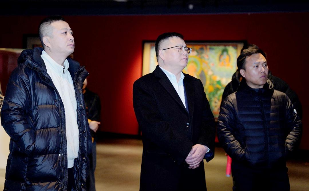 企业家们屏息凝神,或俯身细观矿物颜料勾勒的神佛衣纹,或用镜头记录沙画流转间的庄严瞬间。大家纷纷表示,这不仅是一场视觉盛宴,更是一次对东方哲学与非遗智慧的深刻体悟,为文化IP开发与跨界融合提供了全新灵感。