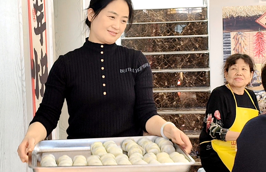赵翠红家里更是一派忙碌喜悦,36位巧婆媳妇齐聚一堂,手里包着油糕,嘴里聊着家常,满屋笑声不断。没多少功夫,桌上就整整齐齐摆满了一盘盘黄亮精巧的油糕,过年的热闹和暖意,在这屋里漫延开来。