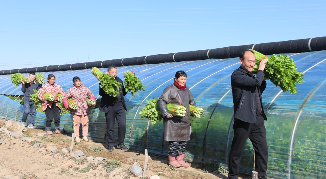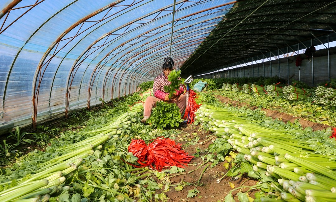 据了解,近年来,该村合理利用土地资源,积极调整产业结构,建起2000亩连片大棚芹菜基地,形成种植、销售于一体的产业链。一年多茬的鲜绿芹菜远销当地和省内外市场,成为了农民增收致富的主导产业。(特约摄影张秀峰)
