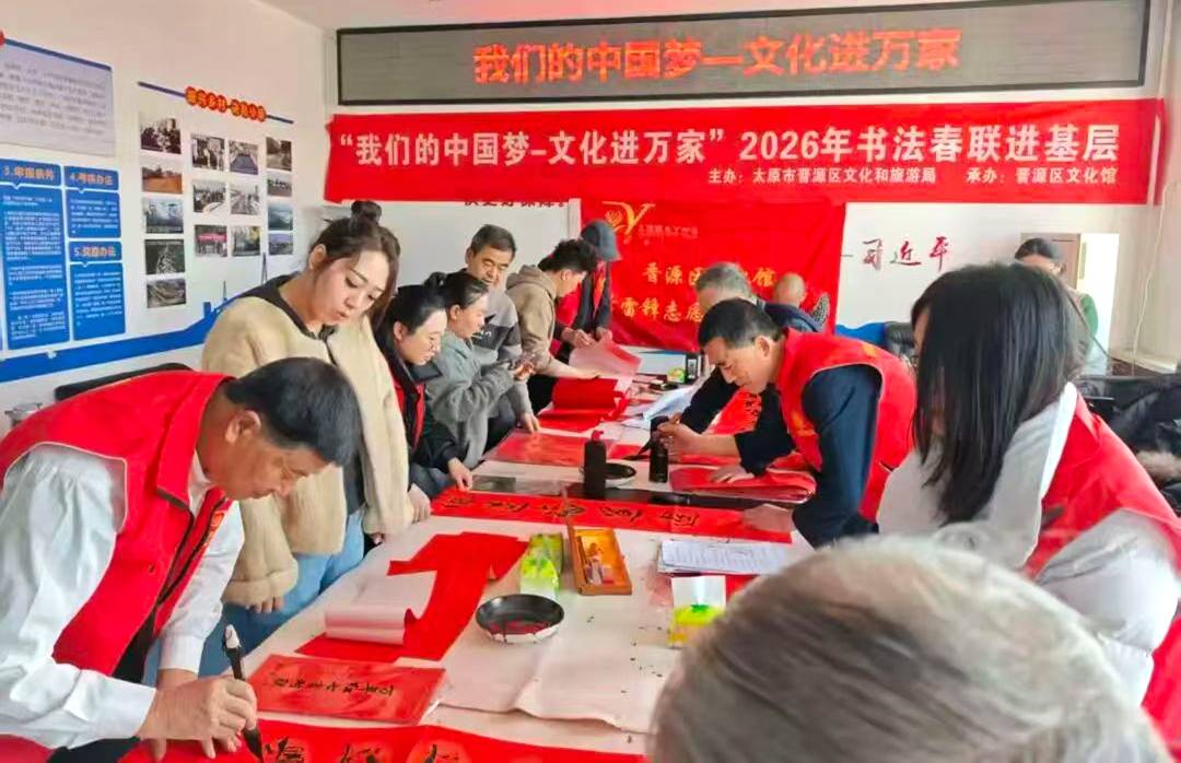 笔墨送福暖基层,党群连心迎新春。腊月时节,寒意袭人,窗外飘着雪花,但在晋源区南瓦窑村的党群服务中心内,却是暖意融融、墨香四溢。近日,晋源区文化馆组织书法老师走进基层,开展“我们的中国梦——文化进万家”送春联活动,将新春的祝福与文化的温暖送至村民家门口。