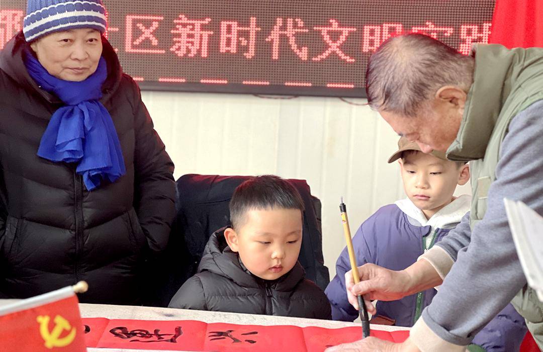现场大家互相交流心得,孩子们看着爷爷奶奶们认真书写的样子,听着大人们时而探讨联句的寓意,时而分享过年的习俗,墨香与欢声笑语交织在一起,孩子在耳濡目染这浓浓的书香氛围,构成了一幅温馨和睦的邻里画卷。