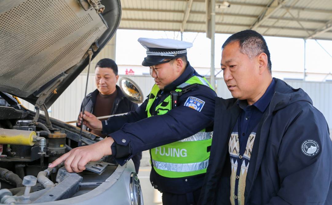 2026年3月4日,在市夏县车检中心,公安民警正在对校车进行安全检查。