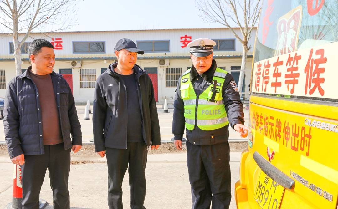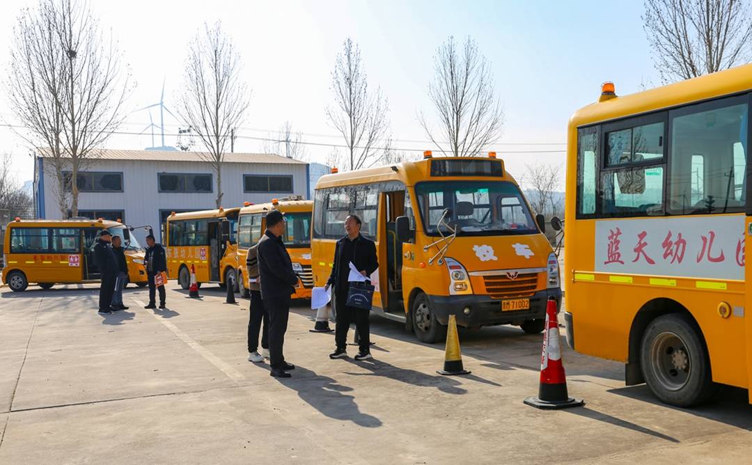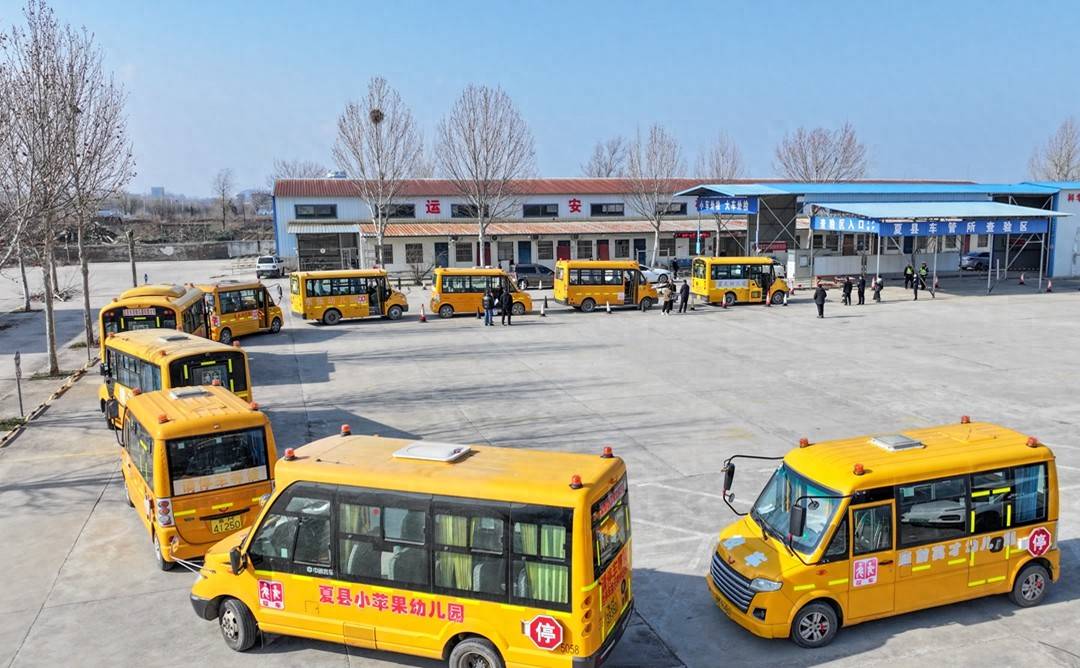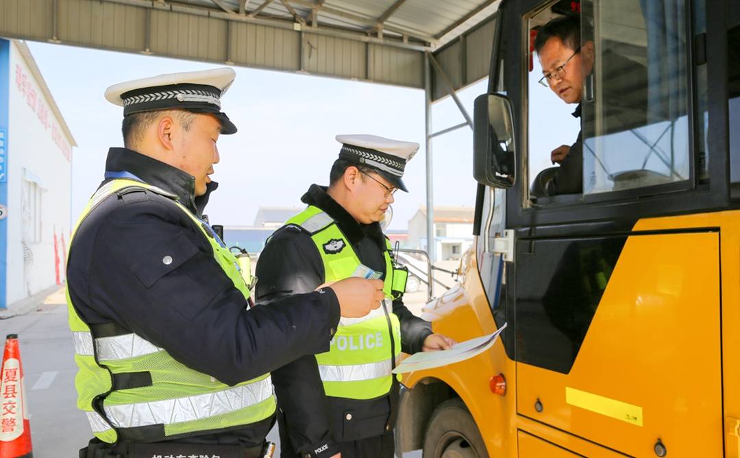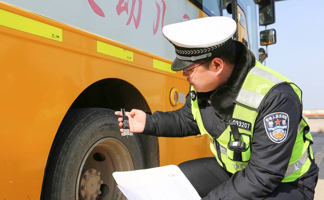 新春开学在即,夏县交警大队与教体局联合集中开展校车安全检查行动,对辖区中小学校、幼儿园正在运营的校车的轮胎、仃车牌、尾灯、灭火器、急救药箱等进行检查,以排除隐患,确保学生乘车安全,迎接新学期的到来。(特约摄影张秀峰 武曙光)
