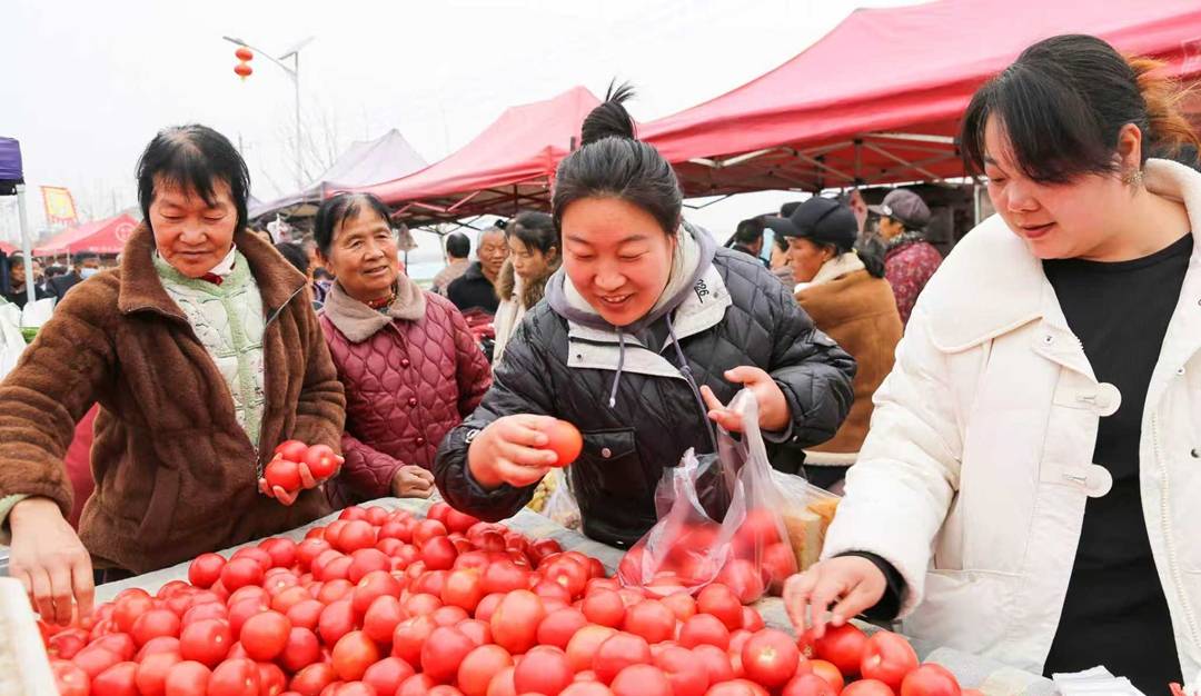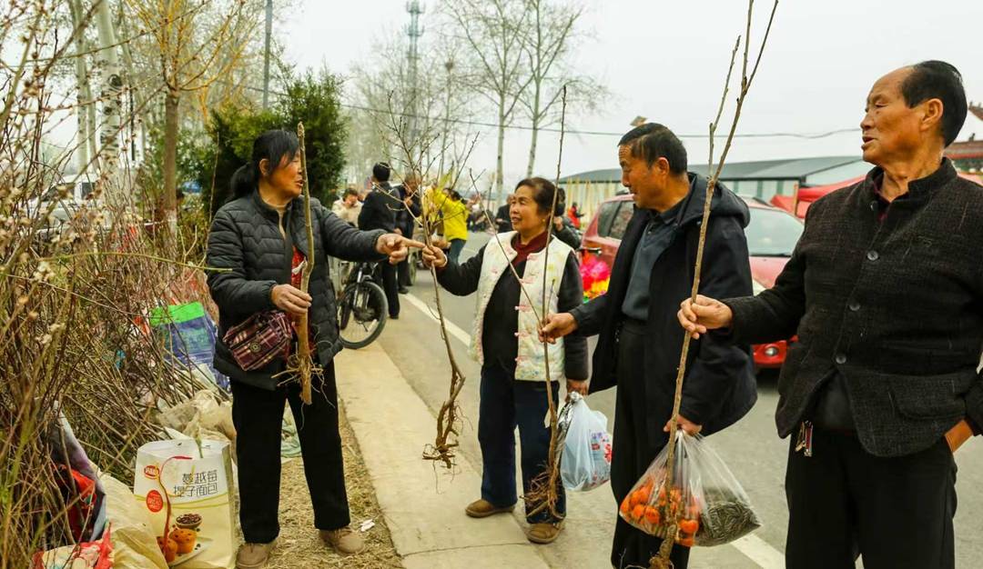图⑤ 2026年3月13日,在西阴村古会上,村民正在选购树苗。