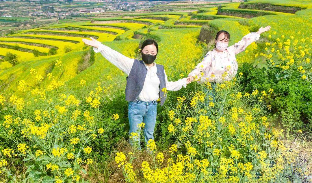 2026年4月15日,闻喜县郭家庄镇东坪村的油菜花海迎来花期尾声。漫山遍野间,金黄花瓣与成串青荚交织铺展,黄绿相映、层次分明,勾勒出如诗如画的田园景致,尽显春日别样生机。这般清新秀美的风光,吸引不少市民前来打卡游玩,大家漫步田间,沉浸式乐享田园春光,定格暮春限定美景。(特约摄影 姚中吉)